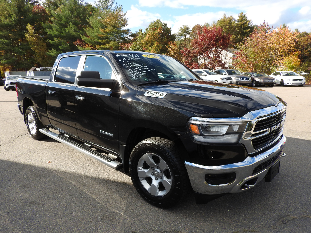 *****CARFAX CERTIFIED***** This is a super clean and very well maintained 2019 Ram 1500 Crew Cab Big Horn with only 111K miles. This super clean full size crew cab 4 wheel drive truck has been recently fully serviced with 4 tires, recent brakes and fresh oil change make this truck ready for your commute to work or school. This Big Horn has it all including heated power seats, big infotainment schreen, rear view camera, 18" alloy wheels, apple car play, sliding rear window, bed liner and much more. This truck is not going to last on our lot so give us a call at 508-697-9800 and we will answer any other questions at that time.